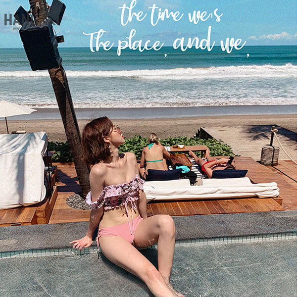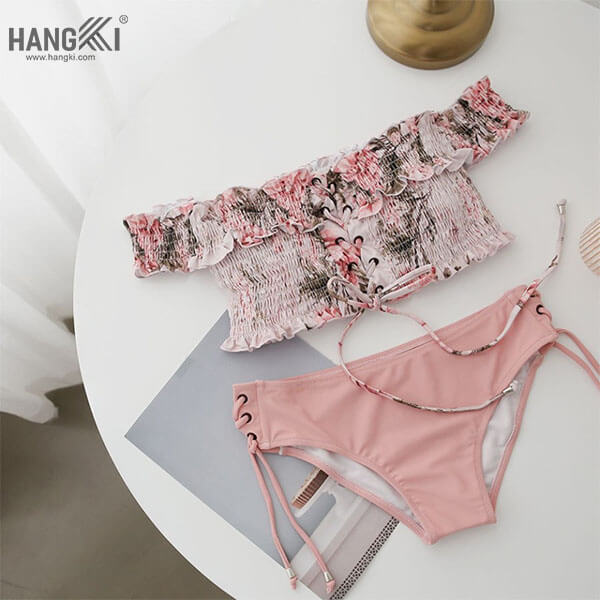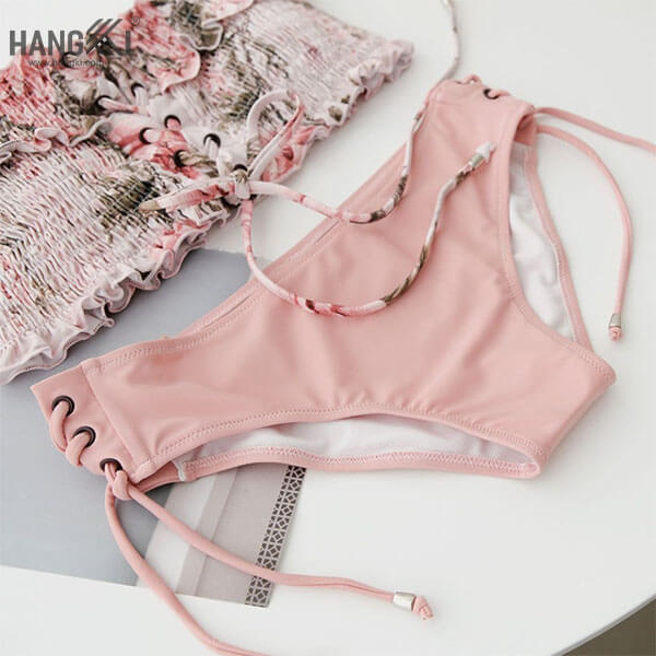 MÔ TẢ SẢN PHẨM • Thiết kế kiểu dáng hai mảnh • Lớp áo có mút lót an toàn, đẩy ngực • Họa tiết hoa nhỏ dễ thương, áo cup ngực, thiết kế kiểu tay rớt vai trẻ trung, phía trước có dây rút, hai bên quần cũng có đan dây gợi cảm,… • Màu hồng ngọt ngào, nữ tính • Form chuẩn không kén người mặc